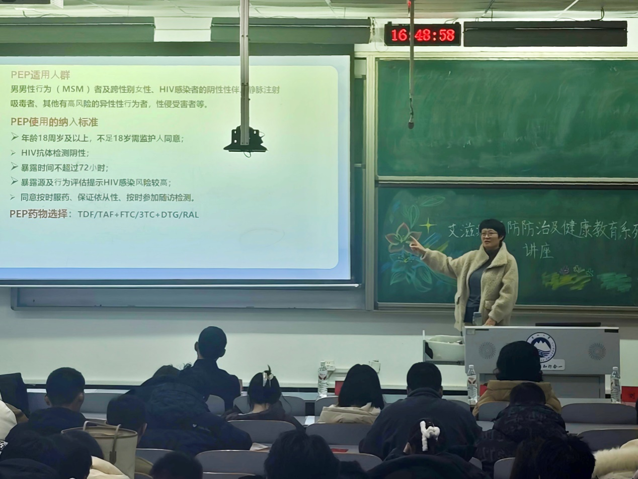 时值第38个“世界艾滋病日”来临之际,为深入贯彻落实国家关于艾滋病防治工作的决策部署,切实提升我校师生艾滋病防控意识与能力,营造全员参与、共担责任的健康校园氛围。近日,由校医院联合资源与材料学院承办的2025“世界艾滋病日”主题宣传讲座在工学馆104教室举行,此次讲座特邀秦皇岛市第三医院感染科副主任医师贾春晖主讲,200余名师生参加了本次讲座。